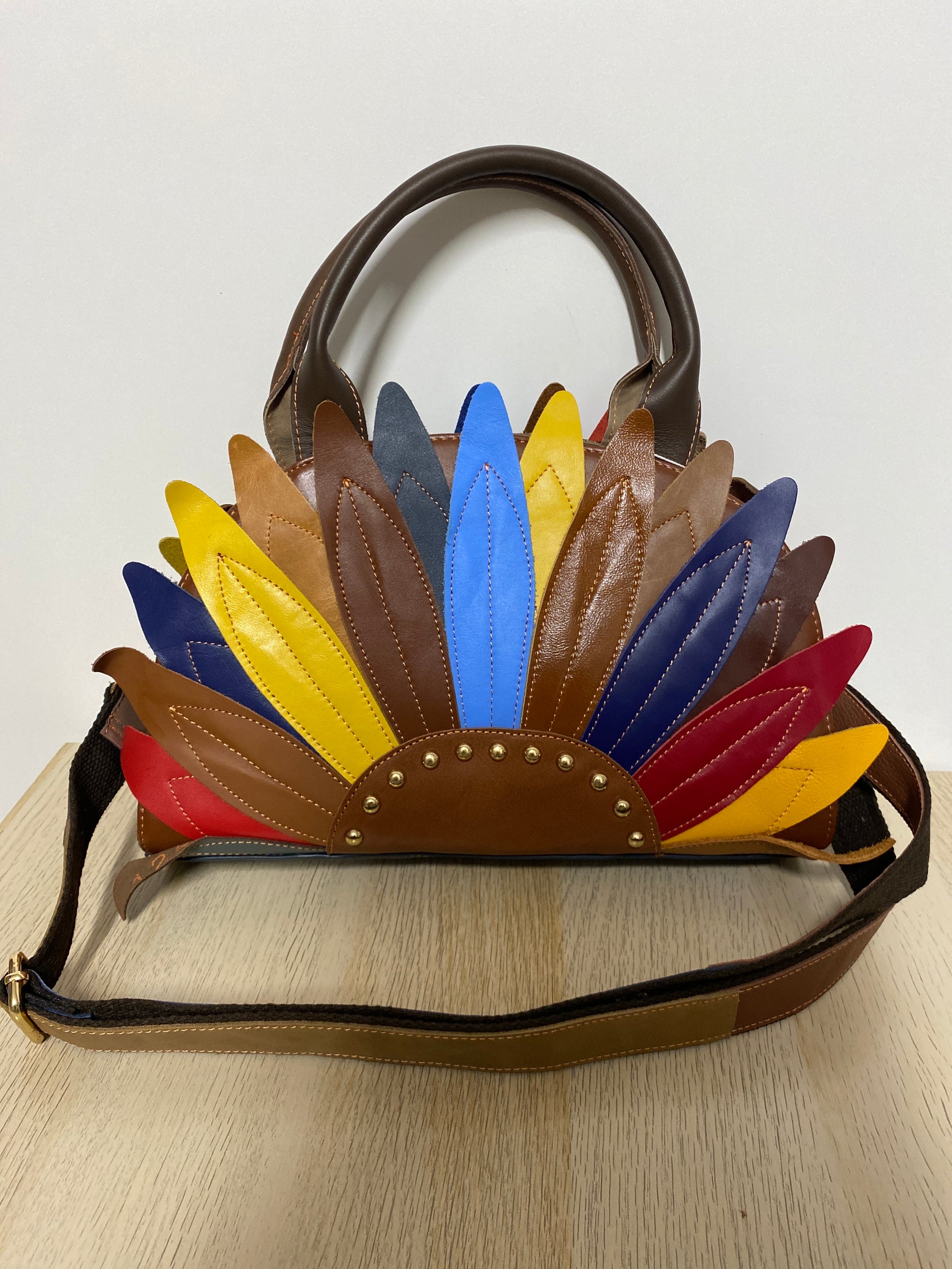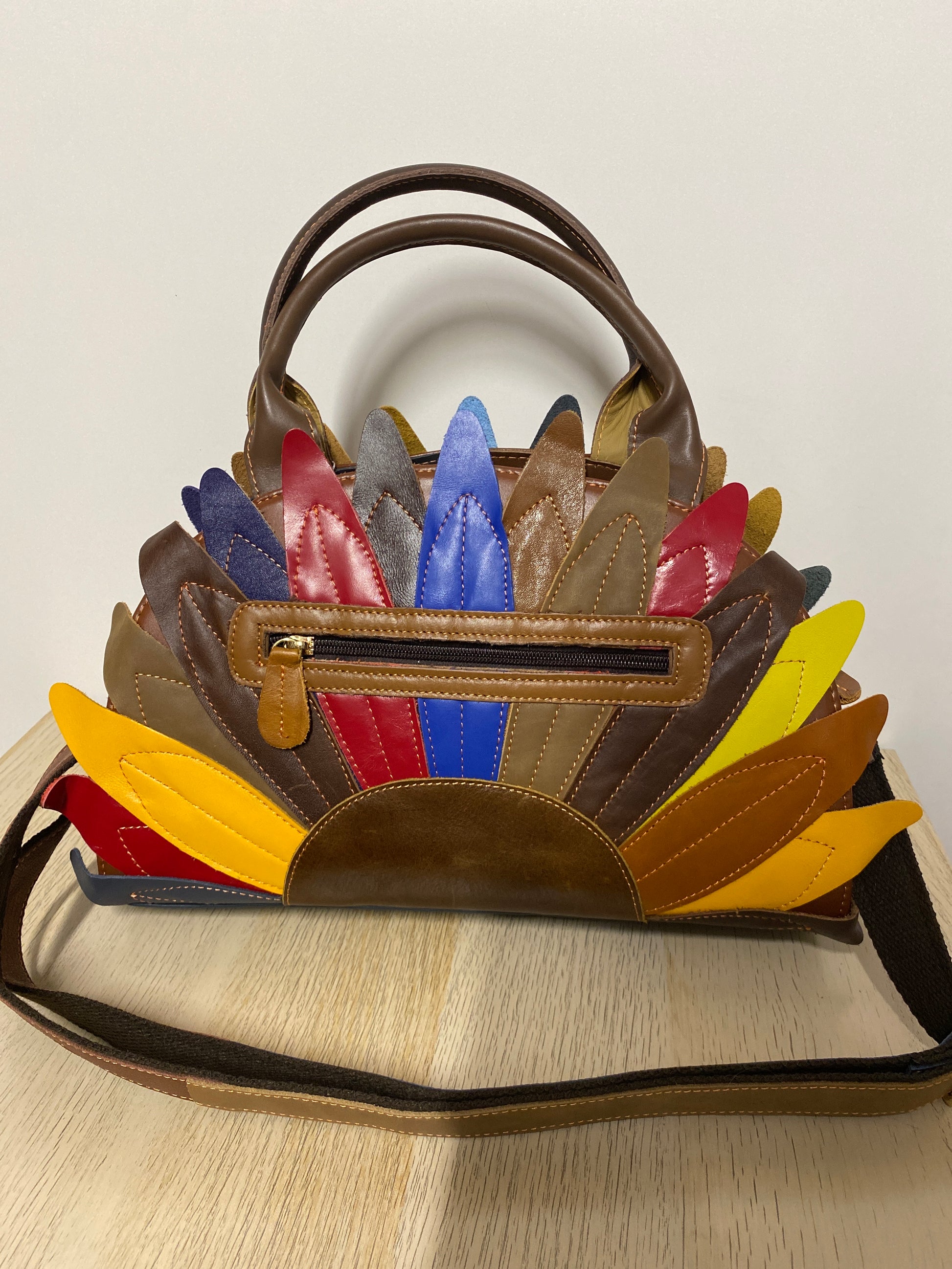 Questa borsetta in pelle a petali multicolore è perfetta per il tuo stile unico e audace. Grazie alla tracolla regolabile, puoi portarla comodamente a spalla o a mano. Le dimensioni perfette di 33x20 la rendono ideale per portare con te tutto ciò di cui hai bisogno senza rinunciare allo stile.
