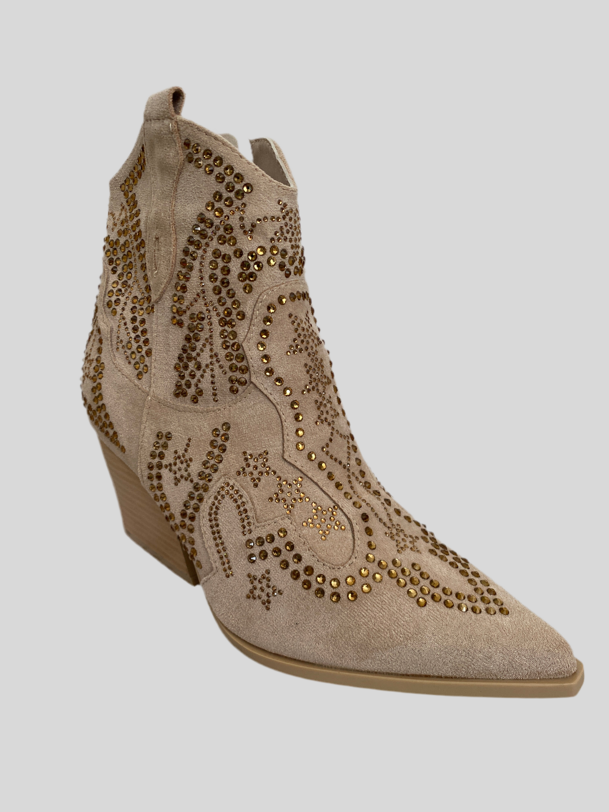 Stivaletti scamosciati in similpelle con strass, con tacco di 6 cm. Progettati per offrire un look sofisticato con un tocco di luccichio. Realizzati con materiali di alta qualità per garantire comfort e stile duraturo. Eleva il tuo outfit con questi stivaletti eleganti e comodi.altezza massima 20 cm