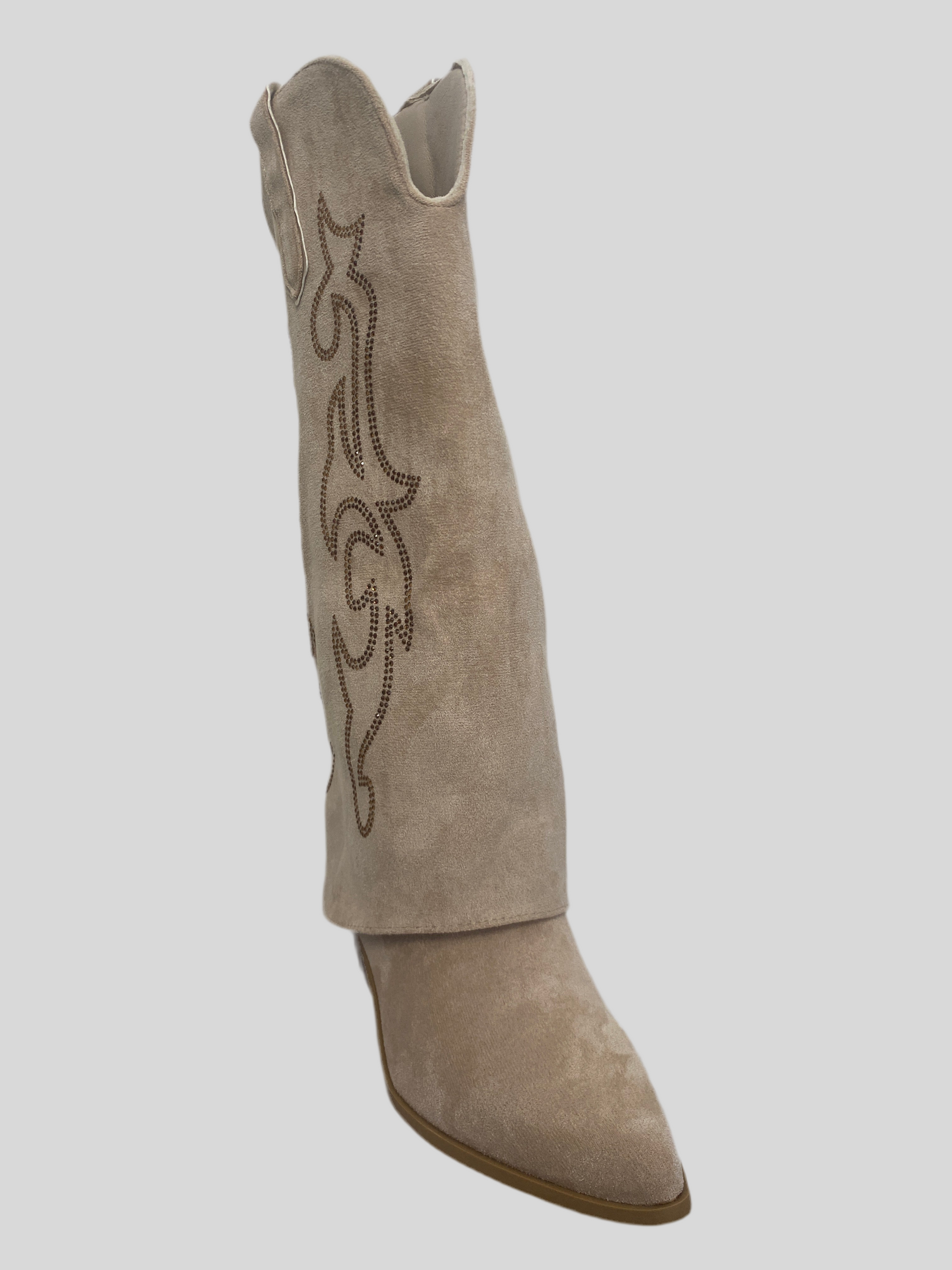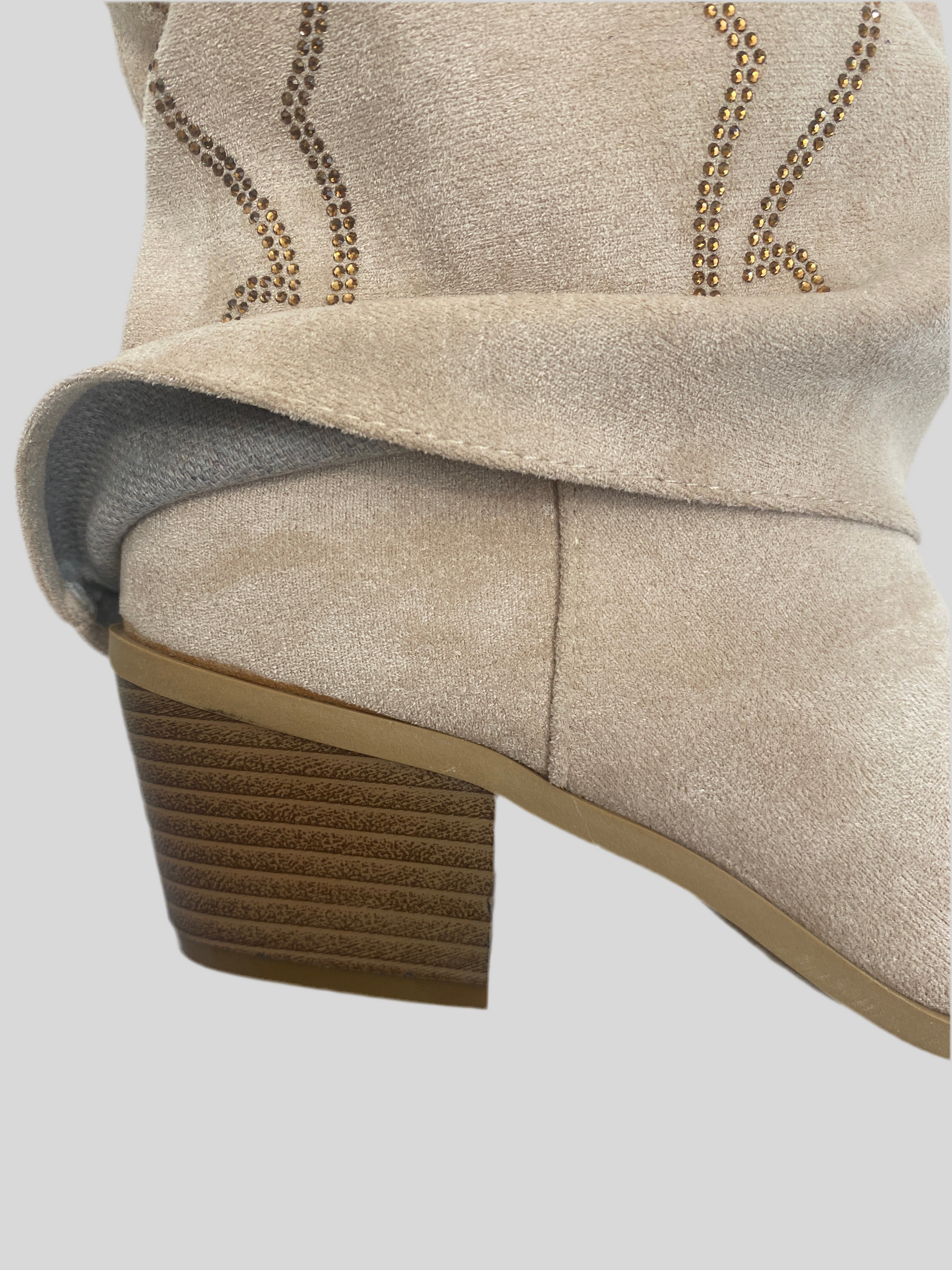 I nostri eleganti stivali scamosciati in similpelle sono un must-have per il tuo guardaroba. Con il loro tacco da 6cm, garantiscono comfort e stile. I delicati strass impreziosiscono la tomaia e aggiungono un tocco di glamour a qualsiasi look. Perfetti per ogni occasione, da giorno e da sera.altezza massima 38 cm